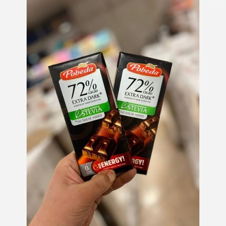 شکلات تخته ای 72 درصدتلخ (بدون شکر) استویا پوبدا روسیه