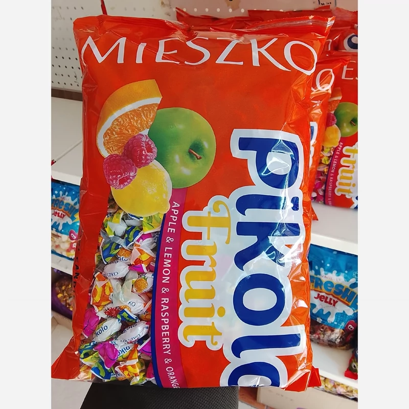 آبنبات پیکالو میوه لهستانی تکه های طبیعی از میوه های متنوع وزن یک کیلوگرم داخل بسته 900 عدد آبنبات ریز