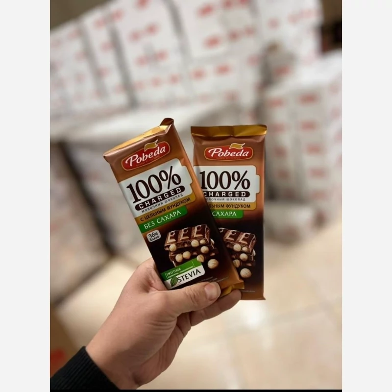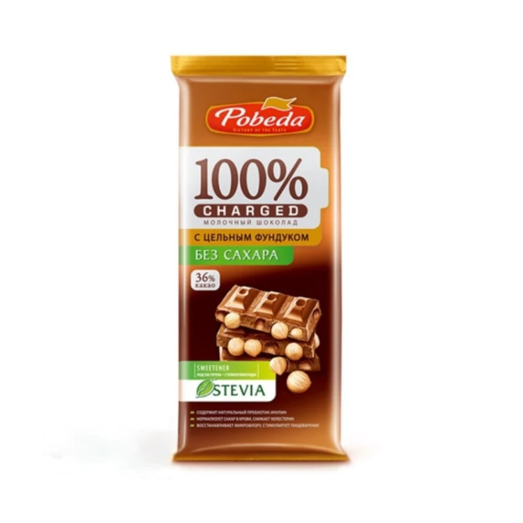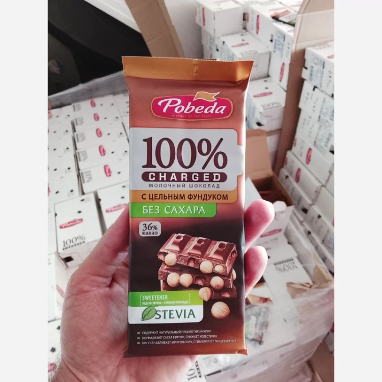 شکلات تخته ای فندقی 36 درصد کاکائو (بدون قند) استویا پوبدا روسیه