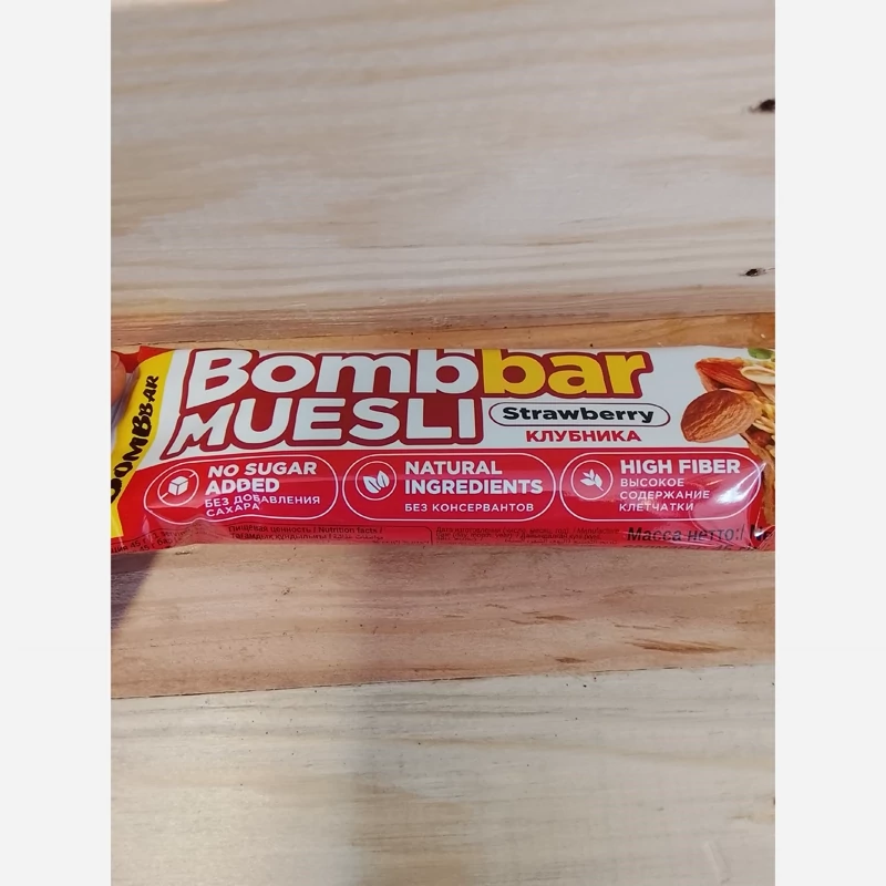 پروتئین بار رژیمی بدون شکر بمبار روسیه فیبر بالا بدون شکر مخصوص افراد رژیمی و دیابتی طعم توتفرنگی 45 گرمی